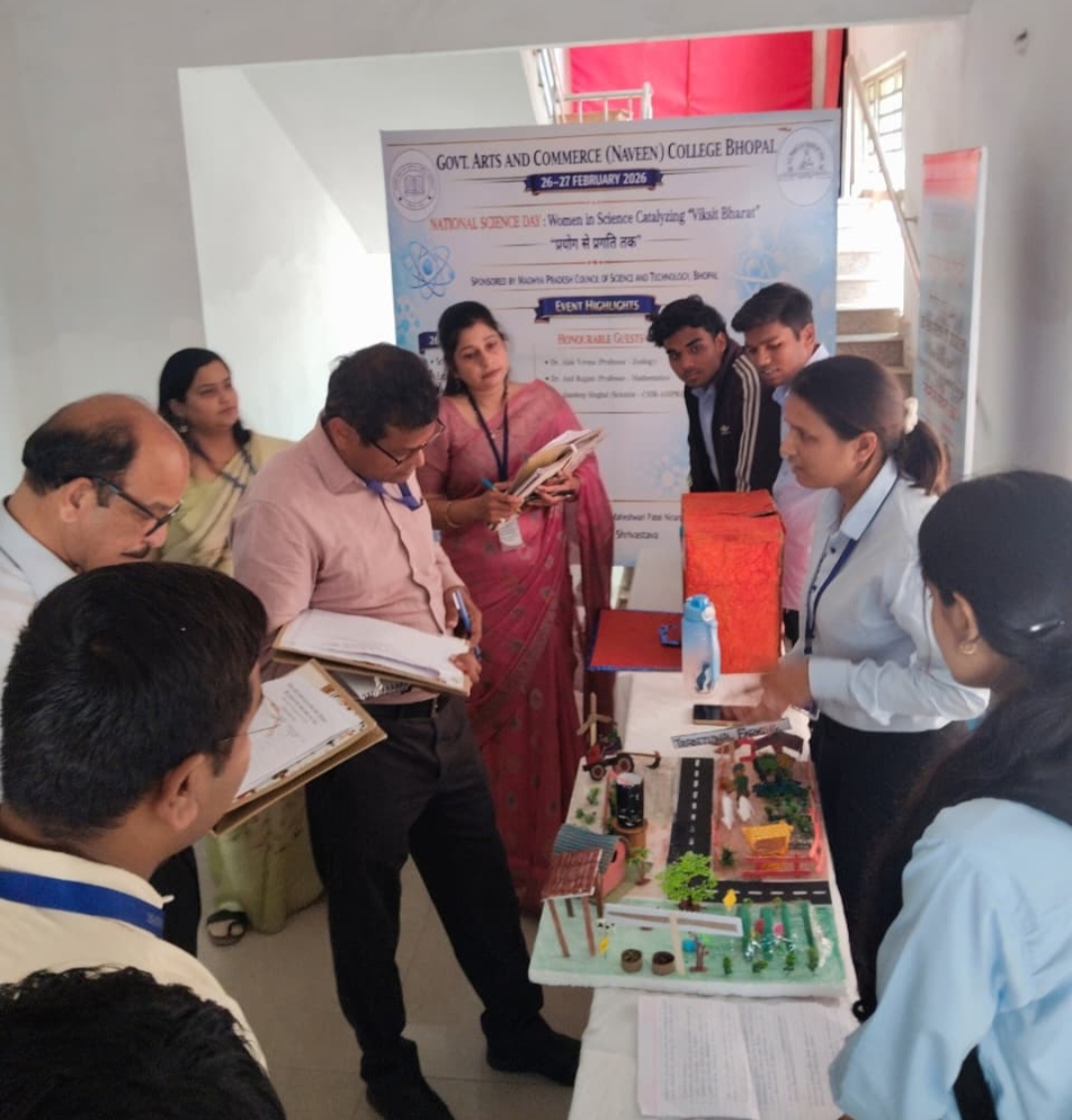 भोपाल। शासकीय कला एवं वाणिज्य (नवीन) महाविद्यालय, भोपाल में 26 एवं 27 फरवरी 2026 को राष्ट्रीय विज्ञान दिवस के अवसर पर दो दिवसीय कार्यक्रम का आयोजन किया गया। यह आयोजन बीबीए एवं बीसीए विभाग के मार्गदर्शन तथा महाविद्यालय के प्राचार्य डॉ. प्रदीप कुमार शर्मा के निर्देशन में संपन्न हुआ। कार्यक्रम को एमपी कौंसिल ऑफ साइंस एंड टेक्नोलॉजी द्वारा प्रायोजित किया गया।
