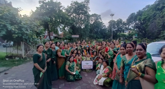 हरियाली तीज, जो परंपरागत रूप से महिलाओं के सौभाग्य, प्रेम और प्रकृति से जुड़ाव का पर्व है, इस वर्ष भोपाल में एक खास सामाजिक संदेश के साथ मनाया गया। राम मंदिर, कमलानगर में आयोजित इस कार्यक्रम में जागरूक महिला मंडल शासकीय आवास कोटरा की महिलाएं और अन्य मातृशक्ति एकत्रित हुईं।