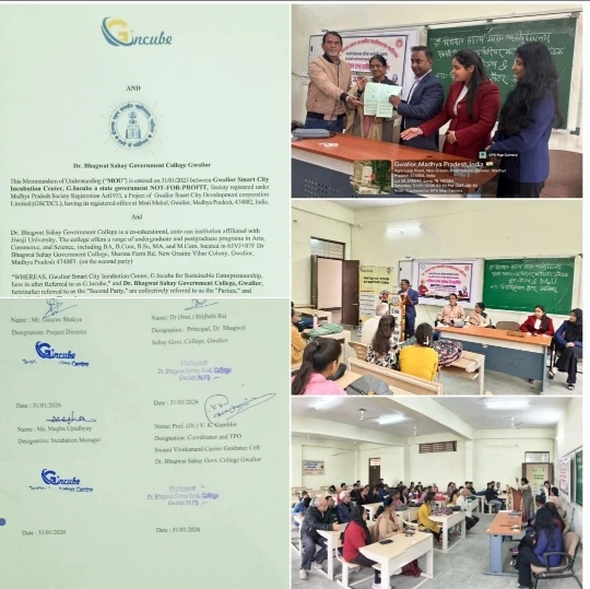 अपनी अभिरुचि के अनुरूप प्रपत्र भरने का आग्रह : भगवत सहाय शासकीय महाविद्यालय और स्मार्ट सिटी इनक्यूबेशन सेंटर के बीच एमओयू ग्वालियर।