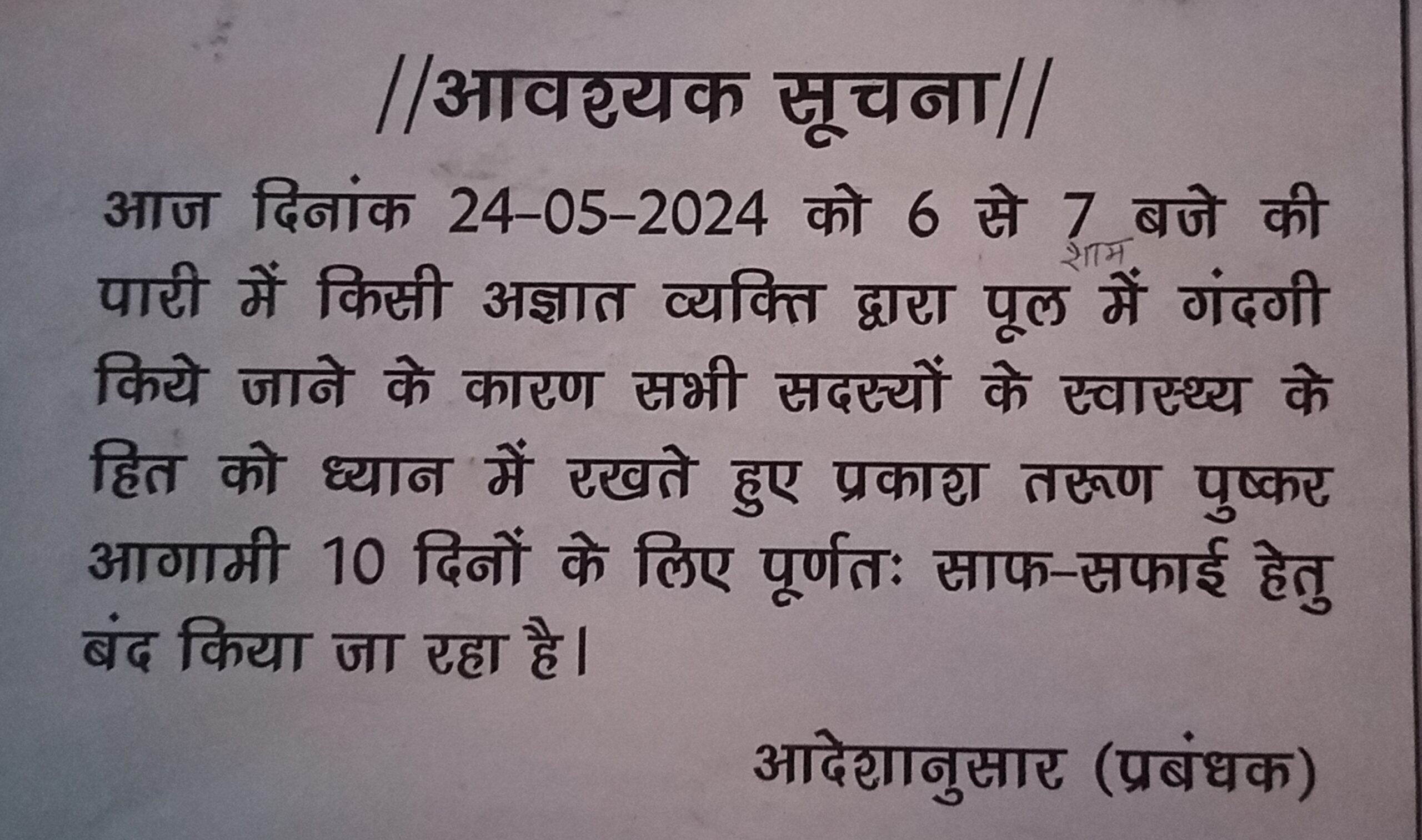 : भोपाल प्रकाश तरुण पुष्कर आज से 10 दिनों के लिए बन्द