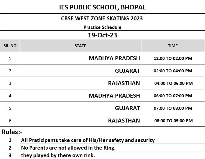 : CBSE स्केटिंग वेस्ट जोन कंप्टीशन 2023 भोपाल के IES SCHOOL में