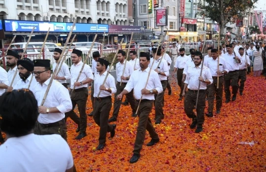 आज का यह पथ संचलन किसी शक्ति प्रदर्शन का प्रतीक नहीं : महावीर नगर की शिवाजी बस्ती में 177 स्वयंसेवक कदमताल करते हुए निकले पथ संचलन में