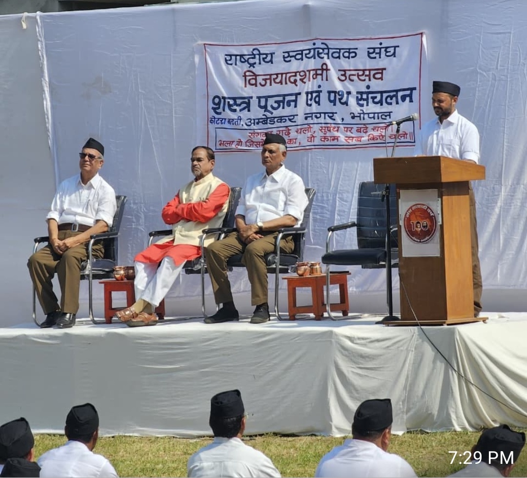 भोपाल। राष्ट्रीय स्वयंसेवक संघ के शताब्दी वर्ष के उपलक्ष्य में विजयादशमी पर्व पर गुरुवार को भोपाल महानगर के 12 नगरों, खंडों और बस्तियों में स्वयंसेवकों ने पूर्ण गणवेश में पथ संचलन निकाले। इस अवसर पर प्रमुख स्थानों पर आयोजित कार्यक्रमों में गणमान्य जनप्रतिनिधियों, संघ पदाधिकारियों एवं समाजजनों की उपस्थिति रही।