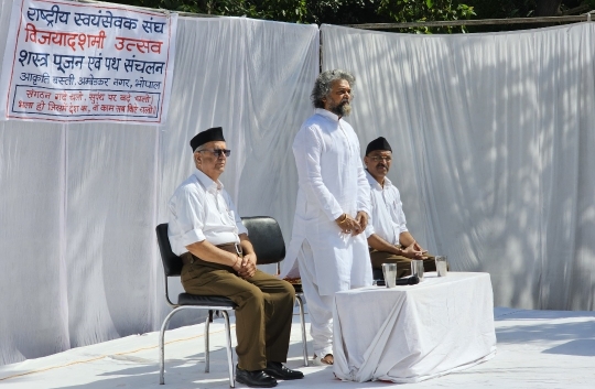 राष्ट्रीय स्वयंसेवक संघ के शताब्दी वर्ष के अवसर पर आज आकृति बस्ती, नेहरू नगर में पथ संचलन का आयोजन किया गया। कार्यक्रम का शुभारंभ करुणाधाम आश्रम से हुआ, जिसकी अध्यक्षता एवं आशीर्वचन परम श्रद्धेय श्री सुदेश शांडिल्य जी महाराज ने प्रदान किए।