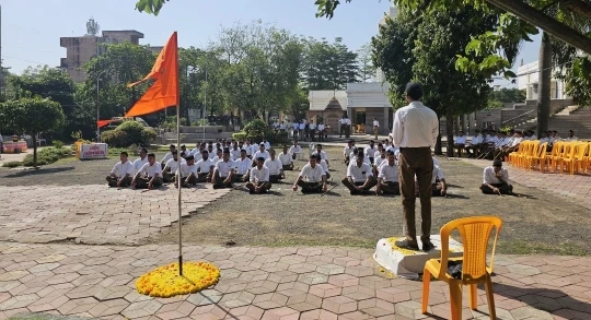 अतिथि ने शाखा के माध्यम से संघ को समझने का आग्रह किया। : संघ शताब्दी वर्ष पर आकृति बस्ती, नेहरू नगर में हुआ पथ संचलन