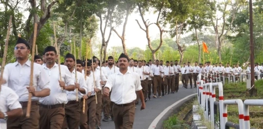 संघ कार्य को समाज के साथ एकरस करते हुए : भोपाल भोजपुर मंदिर से निकला राष्ट्रीय स्वयंसेवक संघ का पथ संचलन