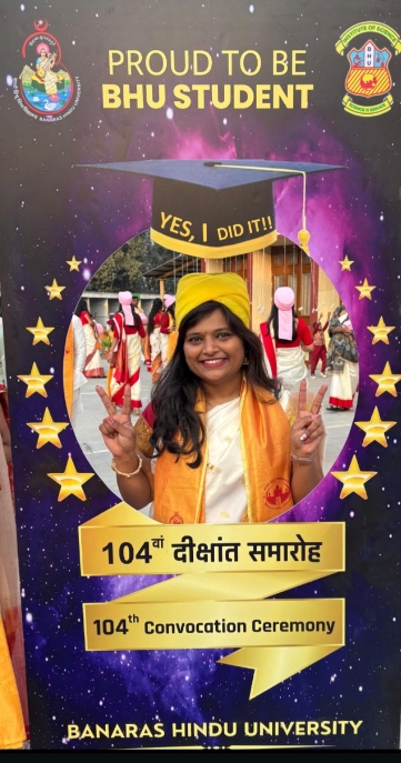 : स्मृति गुप्ता पुत्री इंजी.राजेश गुप्ता एवं डॉ सुनीता गुप्ता, ए 7 कोरल कासा, को काशी ( बी एच यू) बनारस से डॉक्टर ऑफ फिलॉसफी (Ph.D) की उपाधि प्रदान की गई|